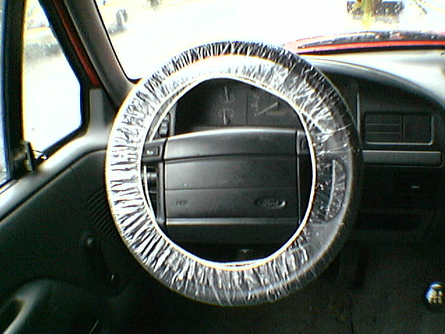 un rollo de película auto adherible el cual se aplica sobre el volante, no